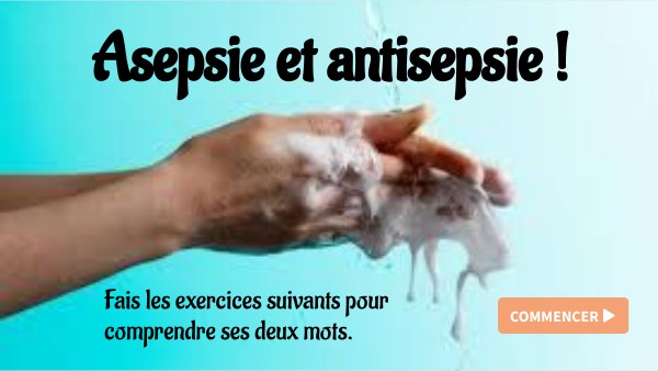L’asepsie est l’ensemble des méthodes préventives qui vise à empêcher une infection en évitant tout contact avec les micro-organismes. L’antisepsie est l’ensemble des méthodes curatives (qui soignent) pour détruire les micro-organismes sur les surfaces internes ou externes du corps, afin de prévenir ou de traiter les infections.