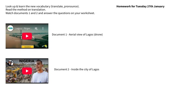 Look up & learn the new vocabulary (translate, pronounce). Read the method on translation. Watch documents 1 and 2 and answer the questions on your worksheet.