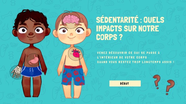 Appuyez sur les boutons bleus pour découvrir des informations sur la sédentarité et votre corps. Avant de partir, n’oubliez pas d’appuyer sur le bouton rouge pour découvrir la lettre que vous avez gagnée.