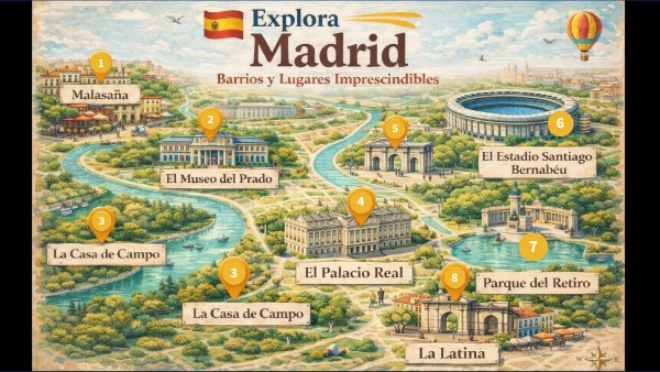 Paraterminar, visitamos La Latina en metro. Es un barrio histórico y tradicional. Al caminar por sus calles antiguas, entramos en bares y pequeños mercados. Mientras nos sentamos en una terraza, observamos la vida madrileña y probamos tapas. El ambiente es tranquilo y auténtico. Personalmente, me gusta mucho La Latina por su encanto tradicional.