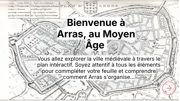 Vous allez explorer la ville médiévale à travers le plan intéractif. Soyez attentif à tous les éléments pour commpléter votre feuille et comprendre comment Arras s'organise...