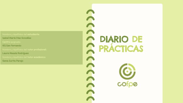 Nombre y Apellidos del estudiante: Isabel María Díaz González Centro asignado:IES San Fernando Nombre y Apellidos del tutor profesional:Laura Massía Rodríguez Nombre y Apellidos del tutor académico:Gema Zurita Parejo
