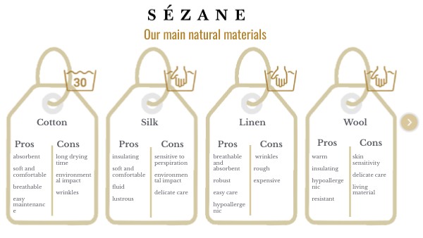 There are three main types of care for our textiles:- hand washing in cold water (e.g.: knitwear, viscose, silk),