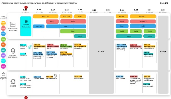 Passez votre souris sur les cases pour plus de détails sur le contenu des modules