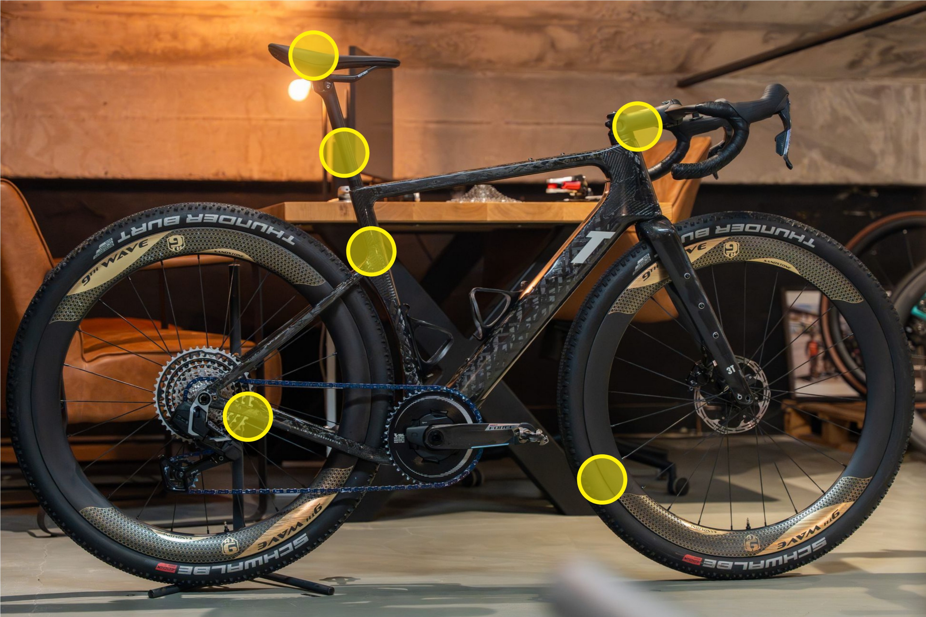 Handlebar: 3T Aeroghiaia 38 cm Stem: 3T Apto Stealth Stem 110mm