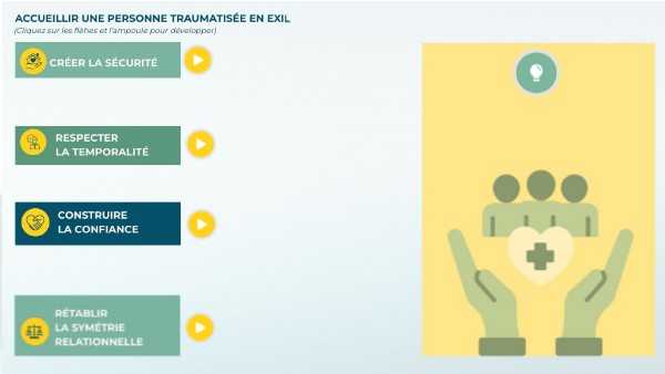 - Respecter la méfiance initiale (symptôme du trauma, non rejet du soignant)