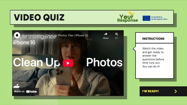 Watch the video and get ready to answer the questions before time runs out.You can do it!