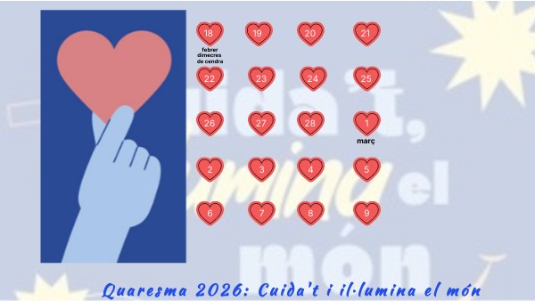 Unha vez que aprendemos a escoitar e coidar o noso corazón, somos chamados a saír ao encontro dos demais. Nesta segunda parte da Coresma, o coidado transfórmase en luz e acción. Estas citas lémbrannos a nosa misión de ser testemuñas do Evanxeo no mundo. Ser 'luz' significa vivir a 'coidadanía': pór os nosos dons ao servizo dos que máis o precisan e transformar a nosa contorna con xestos de tenrura, xustiza e esperanza.