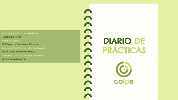Nombre y Apellidos del estudiante: Lidia Rubio PérezCentro asignado:.IES Virgen de Guadaluoe, CáceresNombre y Apellidos del tutor profesional:María José Domínguez Jariego Nombre y Apellidos del tutor académico:Álvaro Cabado Martín