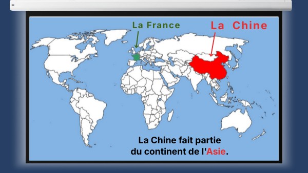 La Chine fait partie du continent de l'Asie.