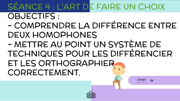 Séance 4 : l'art de faire un choix ObjectiFs : - Comprendre la différence entre deux homophones - mettre au point un système de techniques p
