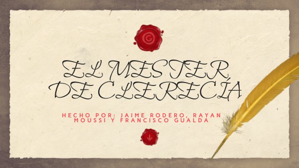 El Mester de clerecía son obras creadas por personas cultas y clérigos que utilizan recursos literarios y un vocabulario con frecuentes cultismos, palabras extraídas directamente del latín sin cambio. Estas obras se hacían con el fin de transmitir valores cristianos y normas de conducta. Los clérigos escribían en los monasterios, sobre vida de santos y milagros y están compuestos en cuaderna vía.