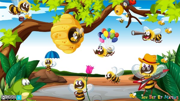 Aide l'abeille à rejoindre sa ruche. Pour avancer, tu dois cliquer sur la case contenant le nombre décimal supérieur le plus proche pour lui indiquer le chemin.