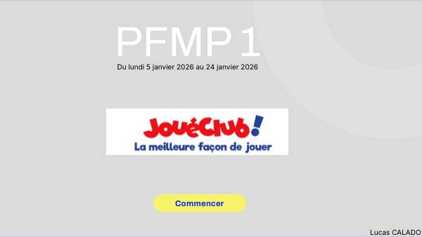 Nom de l’enseigne : JoueClub Représentée par : M. Alexandre Landreau(gérant) Coordonnées : 02.54.83.05.57 ZAC de la Grange 2 41200 - Romorantin Lanthenay Adresse électronique : joueclubromorantin@orange.fr Site internet : Nom de votre tuteur : M. Alexandre Seguin(vendeur) Activité principale : Commerce de détail de jeux et jouets en magasin spécialisé Statut juridique : SARL Forme de commerce :indépendant Secteur d’activité : jouet Effectifs : 6 Surface de vente en m² :1000 Date de création : 26/08/2014 Méthode de vente : libre service assisté Nombre de caisses : 2 Jour et heure d’ouverture : du lundi au samedi, 09h30-19h00