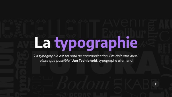 La typographie est l’art et la technique d’agencer les caractères (police, taille, espacements, alignement, hiérarchie) pour rendre un texte lisible, clair et agréable, sur papier comme à l’écran.