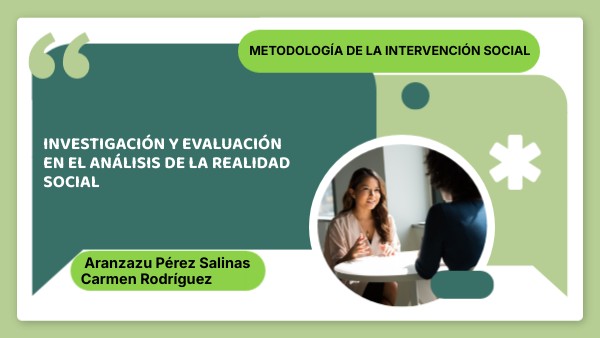 INVESTIGACIÓN Y EVALUACIÓN EN EL ANÁLISIS DE LA REALIDAD SOCIAL