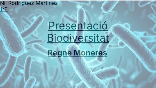 El regne Moneres està format per organismes unicel·lulars amb cèl·lula procariota. Es reprodueixen per fissió binària, poden ser útils o perjudicials i alguns viuen en condicions extremes com volcans o deserts.