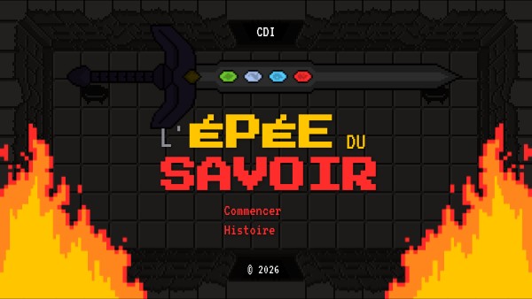 On raconte qu’au sein d’un établissement lointain, le CDI abritait une épée ancienne renfermant un savoir immense, capable de combattre l’ignorance. Pour libérer sa puissance, il fallait retrouver les quatre gemmes du savoir : Numérique, Livre Documentaire, Presse et Esprit critique. Une fois ces gemmes réunies, l’élève pouvait affronter le terrible dragon de la désinformation, caché dans les profondeurs d’Internet.