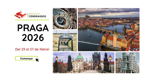 17:30h - Trasllat en autocar cap a l'aeroport21:30h - Vol Praga → Barcelona (VY8655) 00:00h - Arribada a l'areoport de Barcelona 00:30h - Trasllat en autocar cap a l'institut 02:30h - Arribada a l'Institut