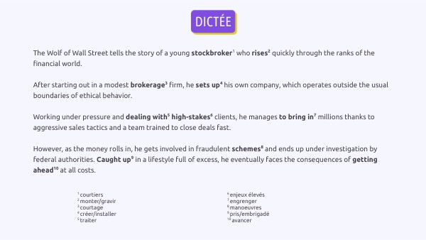 Dictée - The Wolf of Wall Street