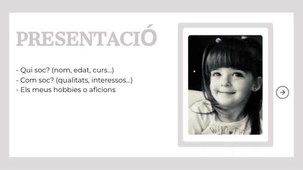- Qui soc? (nom, edat, curs…) - Com soc? (qualitats, interessos…) - Els meus hobbies o aficions
