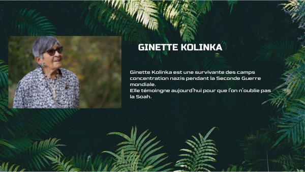 Ginette Kolinka est une survivante des camps concentration nazis pendant la Seconde Guerre mondiale. Elle témoingne aujourd'hui pour que l'o
