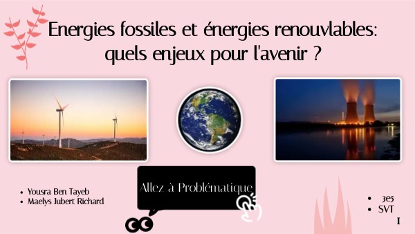 Energies fossiles et énergies renouvlables: quels enjeux pour l'avenir ?