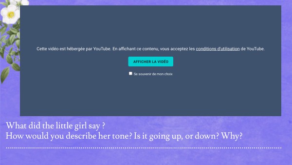 What did the little girl say ? How would you describe her tone? Is it going up, or down? Why? .........................................................................................................................................