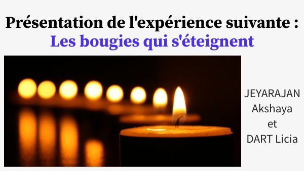 Présentation de l'expérience suivante :Les bougies qui s'éteignent