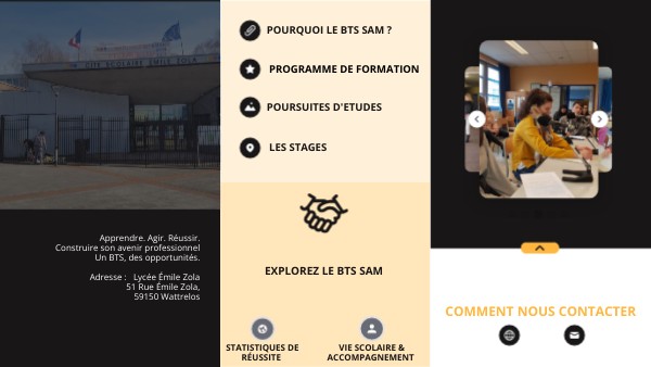 Apprendre. Agir. Réussir.Construire son avenir professionnel Un BTS, des opportunités. Adresse : Lycée Émile Zola 51 Rue Émile Zola, 59150 Wattrelos