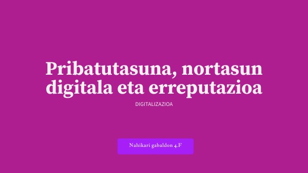 Pribatutasuna, nortasun digitala eta erreputazioa