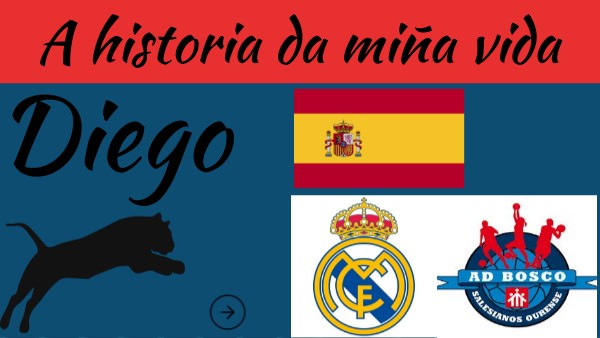 Ola chámome Diego, gústame xogar ao fútbol no Bosco, o Real Madrid, os animais e andar en bicicleta.