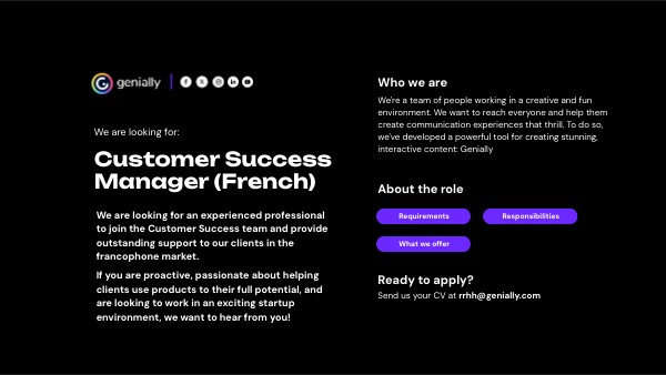 - You have the “Genially spirit”: That means being proactive, results-oriented and a team-player.
