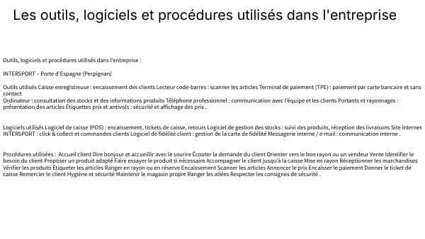 Outils, logiciels et procédures utilisés dans l’entreprise : INTERSPORT – Porte d’Espagne (Perpignan) Outils utilisés