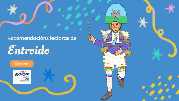 O Entroido constitúe unha das manifestacións máis ricas do noso patrimonio cultural, na que se combinan tradición, creatividade, diversión, participación comunitaria e transgresión. A súa presenza no libro infantil e xuvenil galego permite achegar esta festa ás novas xeracións dun xeito lúdico, de aí esta pequena selección de títulos que, no seu conxunto, contribúe a exaltar a nosa diversidade cultural e identidade colectiva. No país dos entroidos, descubriremos os seus múltiples nomes, vestirémonos de peliqueiros, boteiros, máscaras, felos, pantallas, xenerais, bonitas ou cigarróns, e comeremos filloas, orellas ou botelos. A pasalo ben coa lectura e coa festa!!!