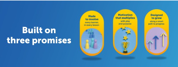 Our promise: Enjoyable and rewarding learning Language practice feels like play, with gamification and rewards that keep students coming back, and global connections with peers that give real purpose to using English. Features: