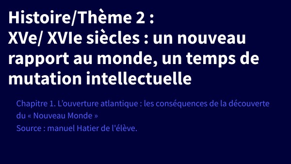 Histoire/Thème 2 : XVe/ XVIe siècles : un nouveau rapport au monde, un temps de mutation intellectuelle
