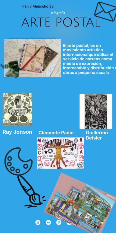 El arte postal, es un movimiento artístico internacionalque utiliza el servicio de correos como medio de expresión,, intercambio y distribución de obras a pequeña escala