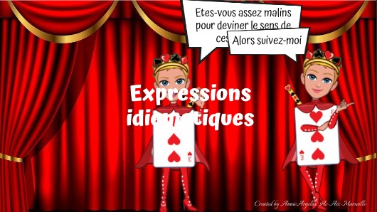 - Les diapositives défilent automatiquement toutes les 30 secondes. - Les élèves doivent faire des propositions pour deviner une expression. - La 3ème diapositive vous donne la réponse et vous permet de faire un point culturel sur l'origine de l'expression en cliquant sur