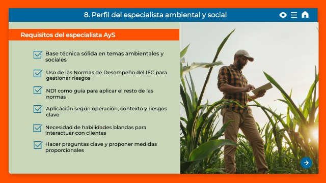 8. Perfil del especialista ambiental y social
