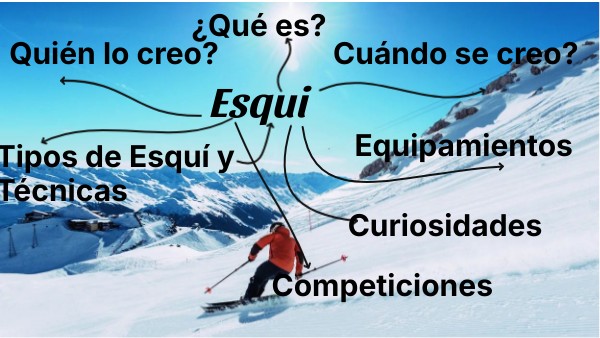 -Modalidades: Diferencia entre el esquí alpino (descenso), de fondo (largas distancias) y de montaña. -Habilidades básicas: Menciona las "5 habilidades" del esquiador: equilibrio, rotación, presión, coordinación y control de cantos. -Para principiantes: El uso de la cuña para frenar y controlar la velocidad.