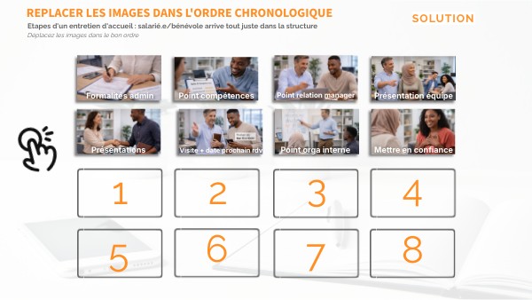 Etapes d'un entretien d'accueil : salarié.e/bénévole arrive tout juste dans la structure
