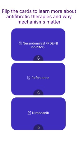 Flip the cards to learn more about antifibrotic therapies and why mechanisms matter
