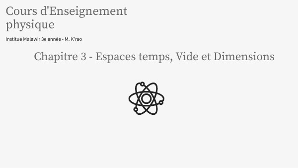 Chapitre 3 - Espaces temps, Vide et Dimensions