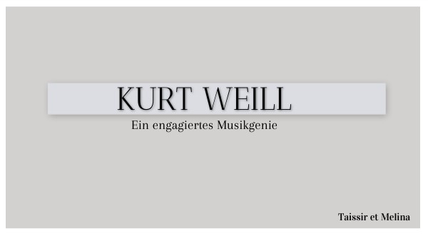 I - Prasentation II - Die Begegnungen III - Bekanntheit IV - Prasentation eines Werkes V - Prasentation eines zweitens Werkes VI - Fazit