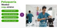 El Técnico en Peluquería está capacitado para brindar servicios de cuidado y transformación capilar, aplicando técnicas de corte, coloración, peinado y tratamiento del cabello, de acuerdo con las tendencias, características del cliente, normas de bioseguridad y estándares de calidad, garantizando una atención profesional y satisfactoria.