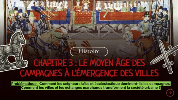 Problématique : Comment les seigneurs laïcs et écclésiastique dominent-ils les campagnes Comment les villes et les échanges marchands transforment la société urbaine ?