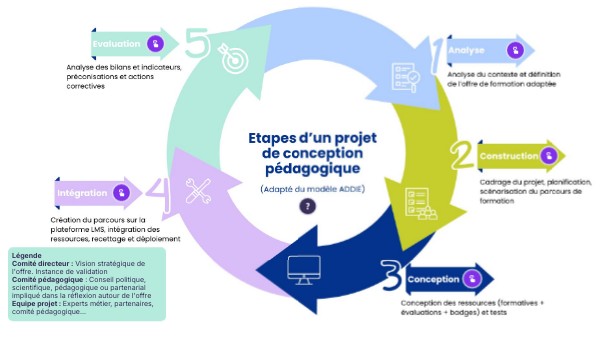 Légende Comité directeur : Vision stratégique de l'offre. Instance de validation Comité pédagogique : Conseil politique, scientifique, pédagogique ou partenarial impliqué dans la réflexion autour de l'offre Equipe projet : Experts métier, partenaires, comité pédagogique...