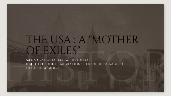 Axe 5 : Langues, lieux, histoires Objet d'étude 1 : Migrations : lieux de passage et lieux de mémoire