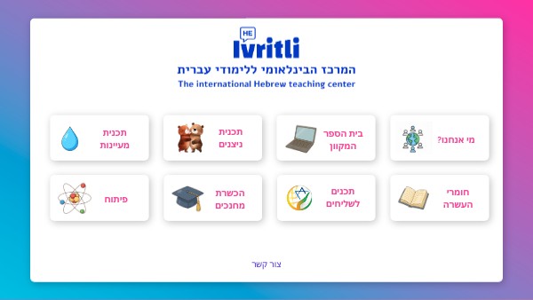 עבריתלי הוא מרכז ייחודי המאגד בתוכו מגוון אפשרויות ללימוד עברית באופן חווייתי, מקצועי וחדשני.